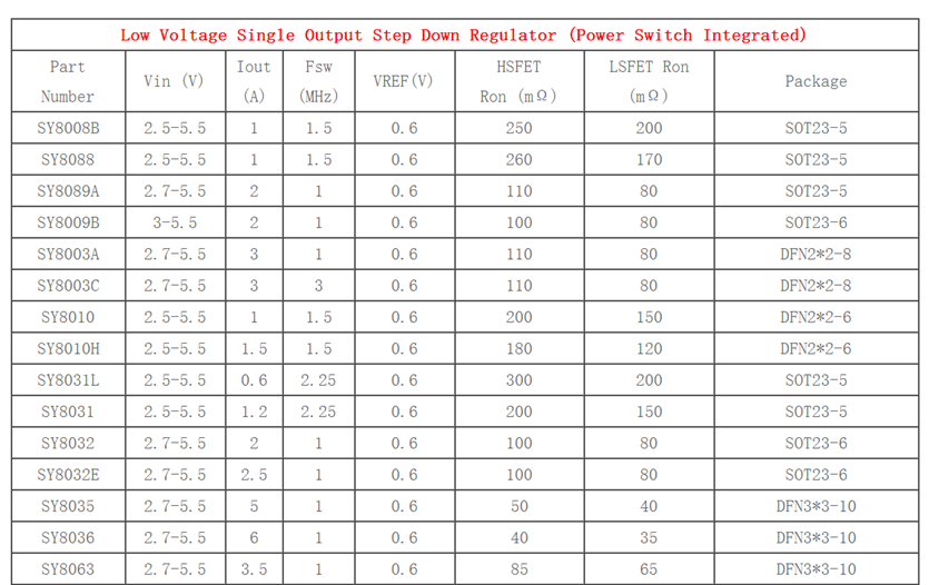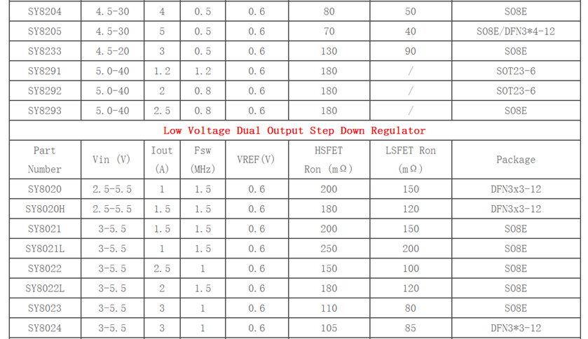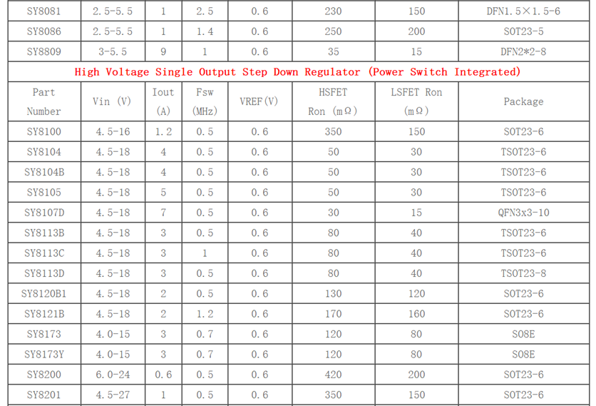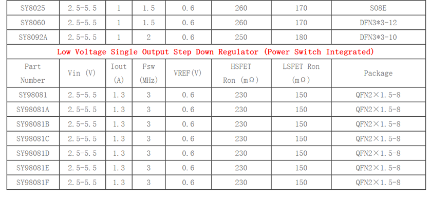 >>美国硅力杰的DC-DC产品,采用专利的BC2D制成技术,可以把MOS管的RDS-ON做的更小,效率做的更高。产品主要特点是小封装大电流、轻载高效和集成度更高,外围电路更简单等。在DC-DC降压中,有SY80系列的低电压输入同步降压DC-DC、SY81系列的中压输入同步降压DC-DC、SY82系列的高压输入DC-DC,还有低电压输入的双路同步降压DC-DC和集成度更高的内置电感的同步降压DC-DC。